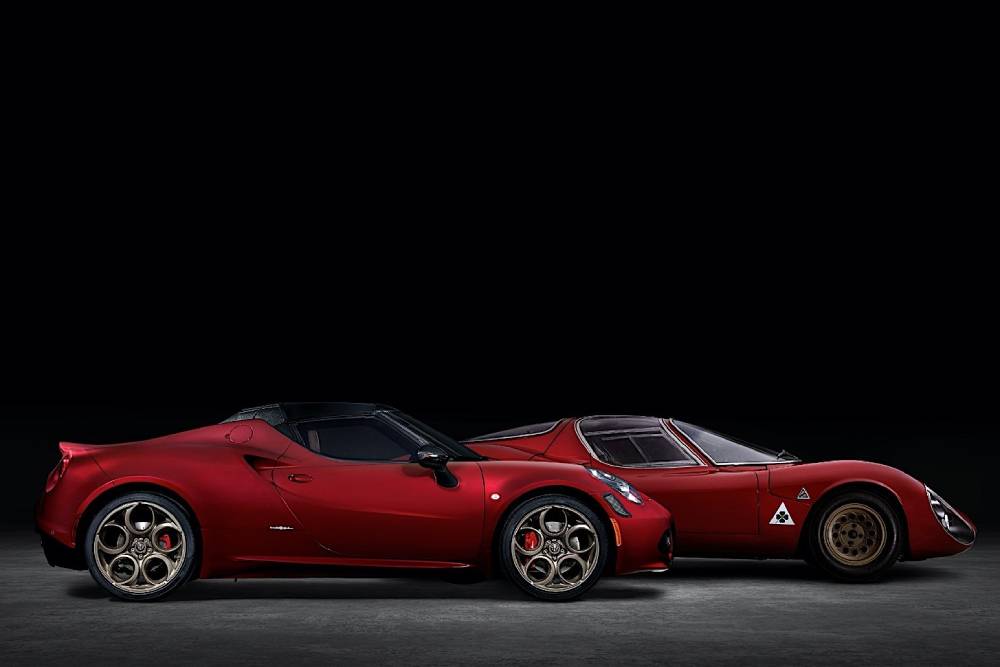 Από το όνομα και τη φωτογραφία καταλαβαίνουμε όλοι σε ποιο θρύλο αποτίνει φόρο τιμής. Το χρώμα Rosso Villa d’Este και ο συνδυασμός του με το χρυσαφί των ζαντών μας παραπέμπουν νοητά στην 33 Stradale, του 1967 – ένα από τα ομορφότερα, σπανιότερα και σήμερα ακριβότερα αυτοκίνητα όλων των εποχών! Η αποχαιρετιστήρια έκδοση της κεντρομήχανης Alfa έχει επίσης επιπλέον ανθρακονήματα στο εξωτερικό, με τους καθρέπτες, τους αεραγωγούς, τους αεραγωγούς και το roll bar να ντύνονται στο εξωτικό υλικό.