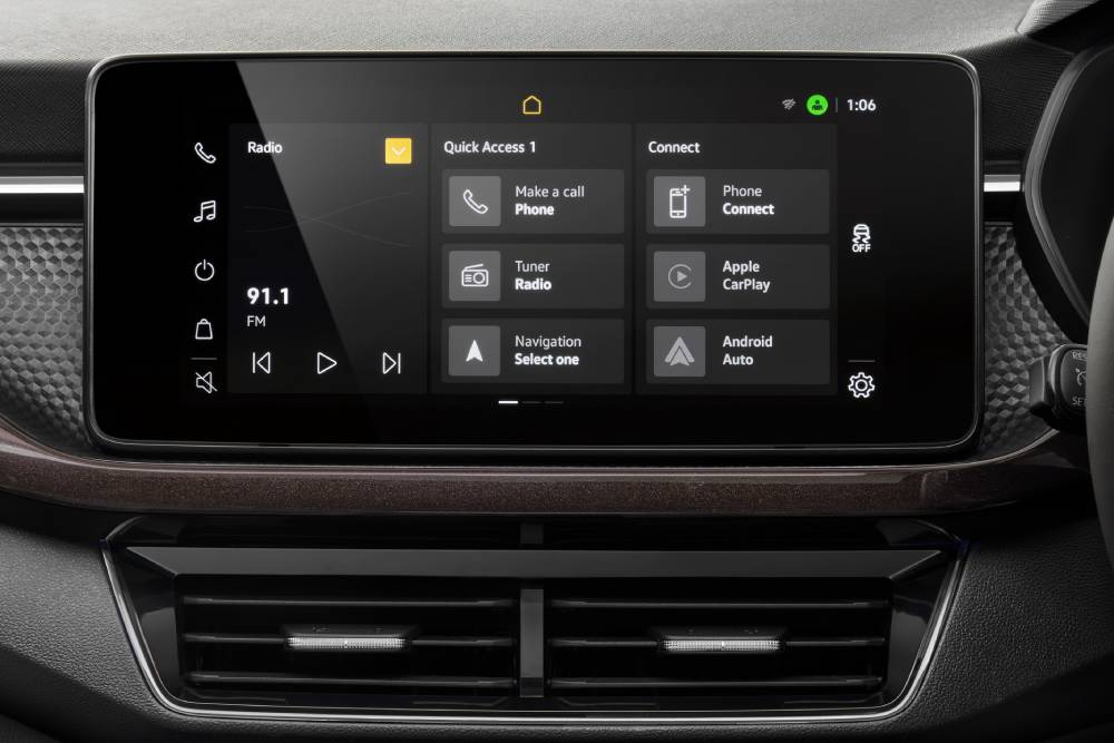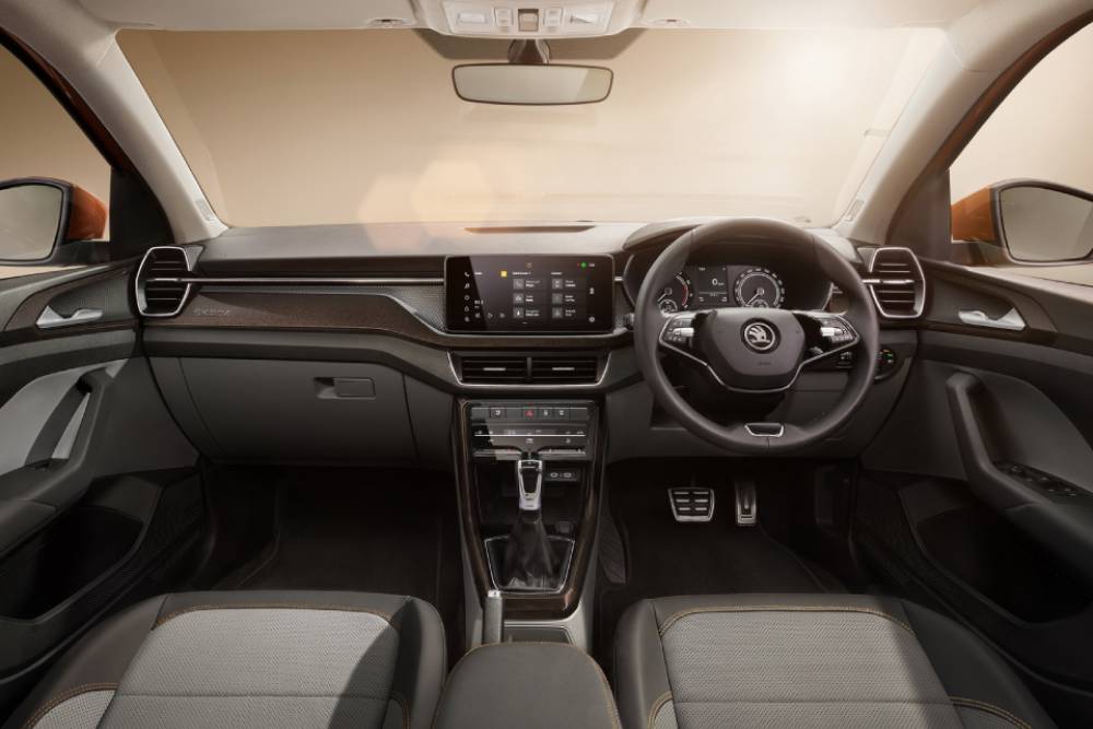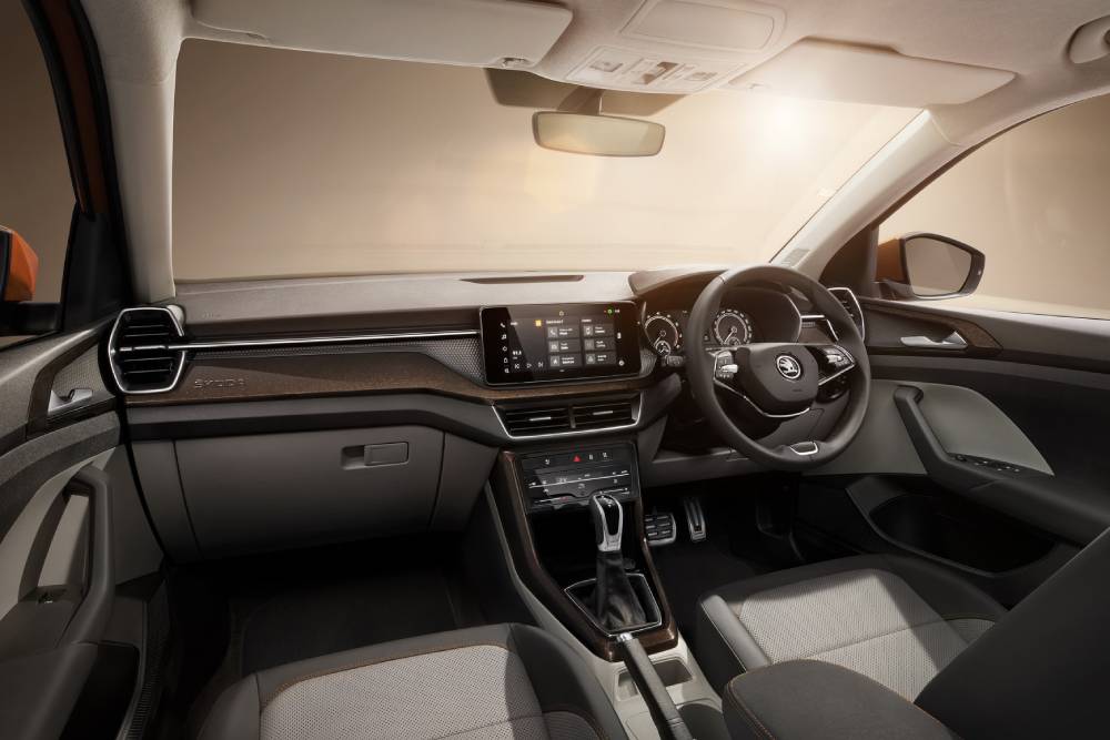 Στο εσωτερικό οι ομοιότητες με το Kamiq συνεχίζουν. Η οθόνη αφής φτάνει έως τις 10 ίντσες, αναλόγως έκδοσης, και τοποθετείται πάνω από τους αεραγωγούς του κλιματισμού, στο κέντρο του ταμπλό. Ιδιαίτερη έμφαση έχει δοθεί στις θήκες για μικροαντικείμενα, ενώ προαιρετικά ο εξοπλισμός περιλαμβάνει μέχρι αυτόματο κλιματισμό, με χειριστήρια touch control.