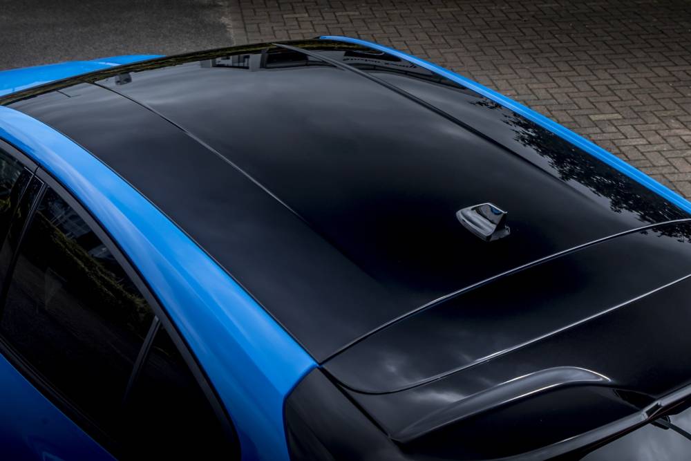 Στο εσωτερικό συναντάμε τα εξαιρετικά μπάκετ της Recaro συνοδεία μπλε ραφών, που εκτείνονται και σε τιμόνι, λεβιέ, ταμπλό, χειρόφρενο, υποβραχιόνιο.