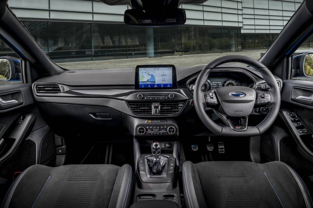 Το Azera Blue παραπέμπει ευθέως σε αυτό, όπως και οι μαύρες 19άρες ζάντες αλουμινίου που περιβάλλονται από ελαστικά Michelin Pilot Sport 4S. Η μαύρη απόχρωση στις πλευρικές εισαγωγές του προφυλακτήρα, τους καθρέπτες, τη μάσκα, την οροφή και τον διαχύτη ολοκληρώνουν το οπτικό πακέτο του Focus ST Edition, προσδίδοντας μια δυναμική αντίθεση με το γαλάζιο χρώμα του αμαξώματος.