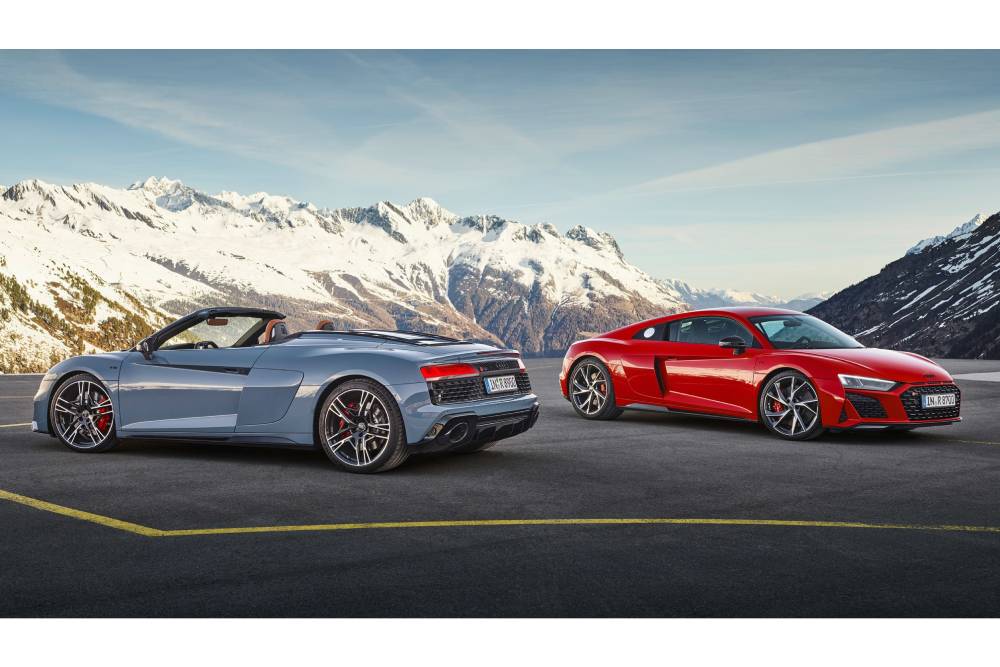 Κάτω από το αμάξωμα είναι που έδωσαν τη μέγιστη προσοχή τους οι τεχνικοί της Audi. Ο ατμοσφαιρικός 5.2 V10 FSI κέρδισε 30 ίππους και 10 Nm, φτάνοντας συνολικά στα 570 άλογα και τα 550 Nm. Ίδια ισχύς, δηλαδή, με το βασικό R8 Quattro. Επειδή όμως το πισωκίνητο είναι ελαφρύτερο (1.590 κιλά το Coupe και 1.695 κιλά το Spyder, 1.660 κιλά και 1.750 κιλά αντίστοιχα για τα τετρακίνητα), του «ρίχνει» σε τελική ταχύτητα! To R8 RWD φτάνει μέχρι τα 328 χλμ./ώρα (326 χλμ./ώρα το Spyder), τη στιγμή που το R8 Quattro σταματά στα 324 χλμ./ώρα (322 χλμ./ώρα). Η επιτάχυνση πάντως παραμένει αμετάβλητη, με τα πρώτα 100 χλμ./ώρα να έρχονται σε 3,7 δλ. για το Coupe και 3,8 δλ. για το Spyder (3,4 δλ. και 3,5 δλ. για τα Quattro).